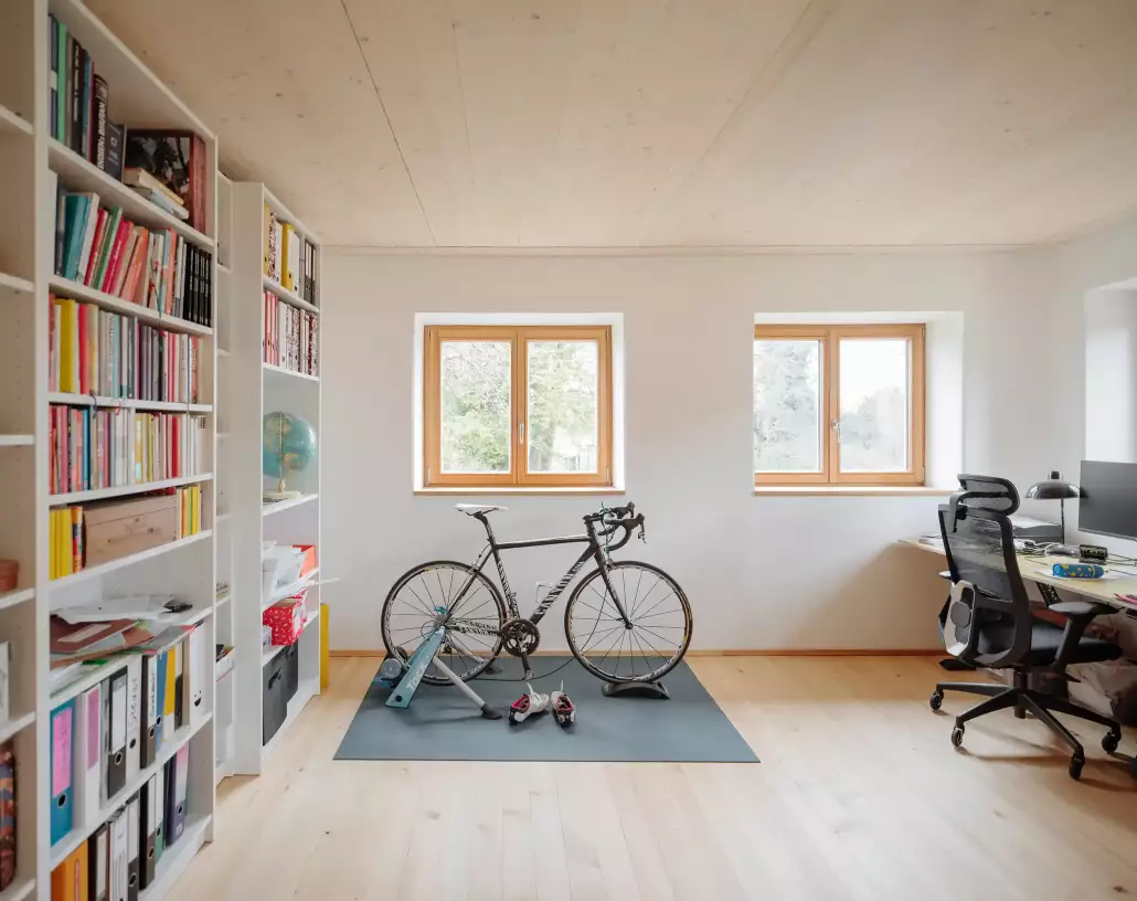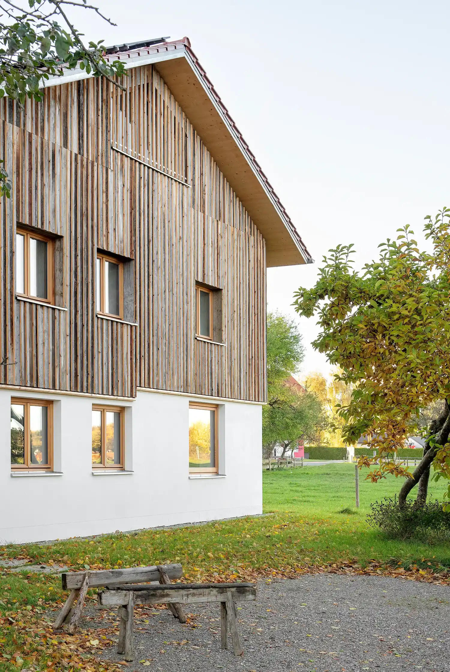 Insgesamt wurden bei der ganzen Baumaßnahme nachwachsende Rohstoffe in einer Vielzahl von Bauteilen eingesetzt. Aus Fichte bestehen alle Tragwerke, aus Tanne die Bretterböden, verlegt auf Lagerhölzern ohne Zementestriche. Die Fassaden bestehen aus wieder verwendeten Altholz. Dank sorgfältiger Detaillierung des baulichen Holzschutzes konnte auf die Verwendung von Holzschutzmitteln innen und außen verzichtet werden. Die Verwendung von Holz dient bei dieser Maßnahme sowohl der Nachhaltigkeit, als auch der Einfügung in den ländlichen Kontext, wo die Verwendung nachwachsender Rohstoffe beim Bauen eine jahrhundertealte Tradition bildet.